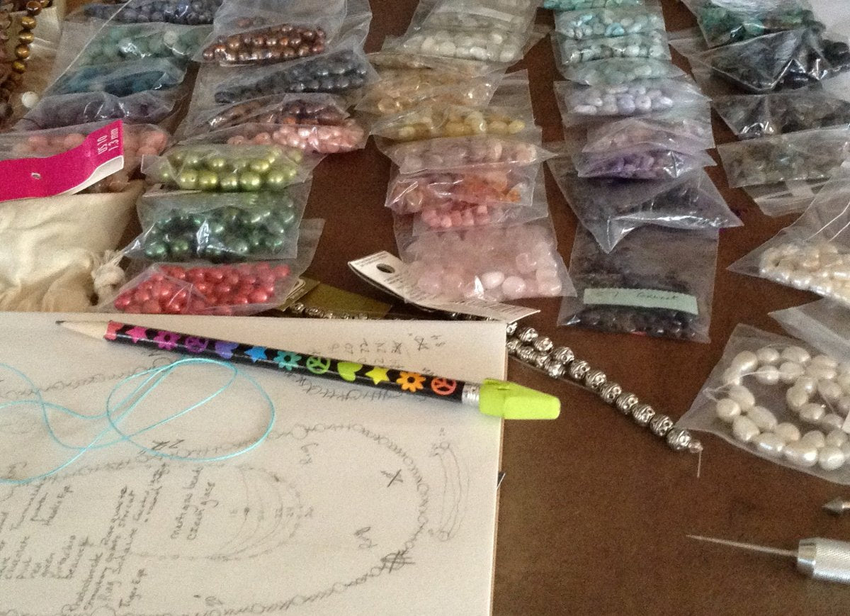 Stone Porch Studios designs that fit your life most often begin on a page in my sketchbook with notes on color, possible gemstones, accents, and metal or textiles. Drawings help to work out techniques and construction details to create pieces that are comfortable and will, with care, last longer. The physical steps in the process are important, but the part of design that truly matters is what in my heart speaks to the needs in yours. For a design to fit your life, it needs to meet you there. More than anything, I want to share in each design the warmth, peace, and comfort I feel when sitting on my stone porch.